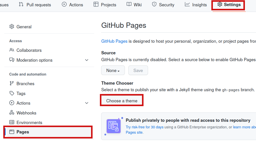 Encore en Settings cliquez sur Pages comme dans l’image ci-dessous, puis sur Choose a theme :